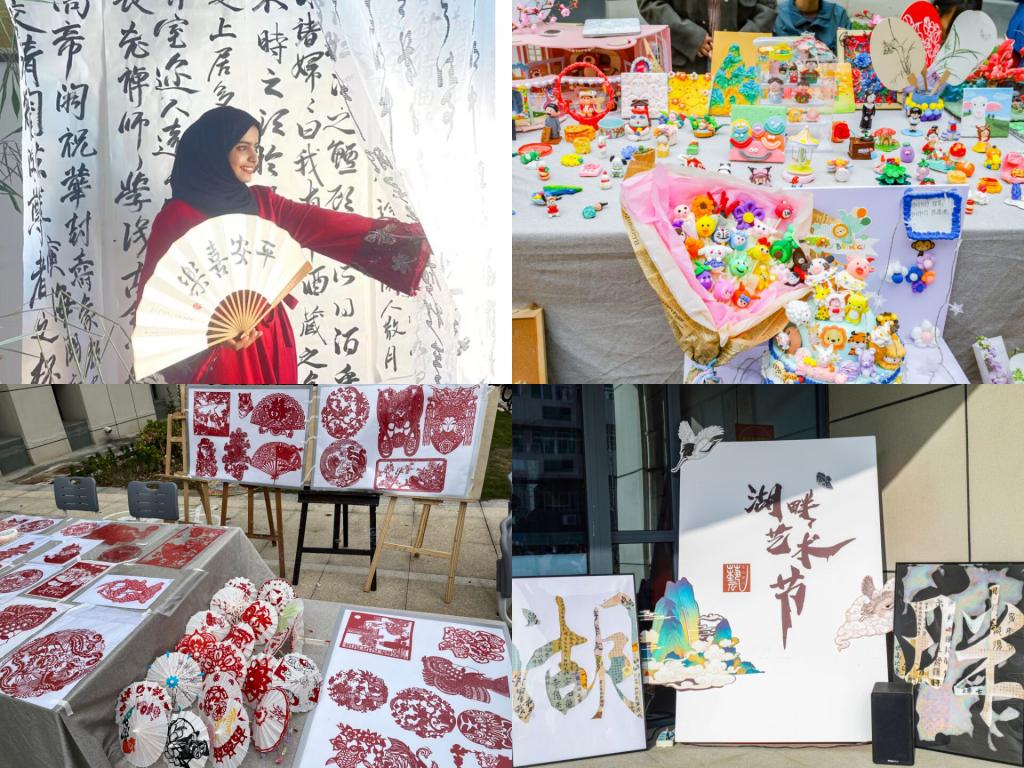 从手工缠花到书法体验,从汉服打卡拍照到石膏娃娃绘制,丰富多彩的活动还吸引了来自阿拉伯的2022级设计学类专业留学生阿玛尼,她将11个俱乐部几乎全部“玩”了一遍。她介绍,这是她来学校第一次参与艺术节活动,以前了解中国的方式只是通过汉语学习,此次国风艺术节让她身临其境,“沉浸式”感受到了中国文化的魅力。