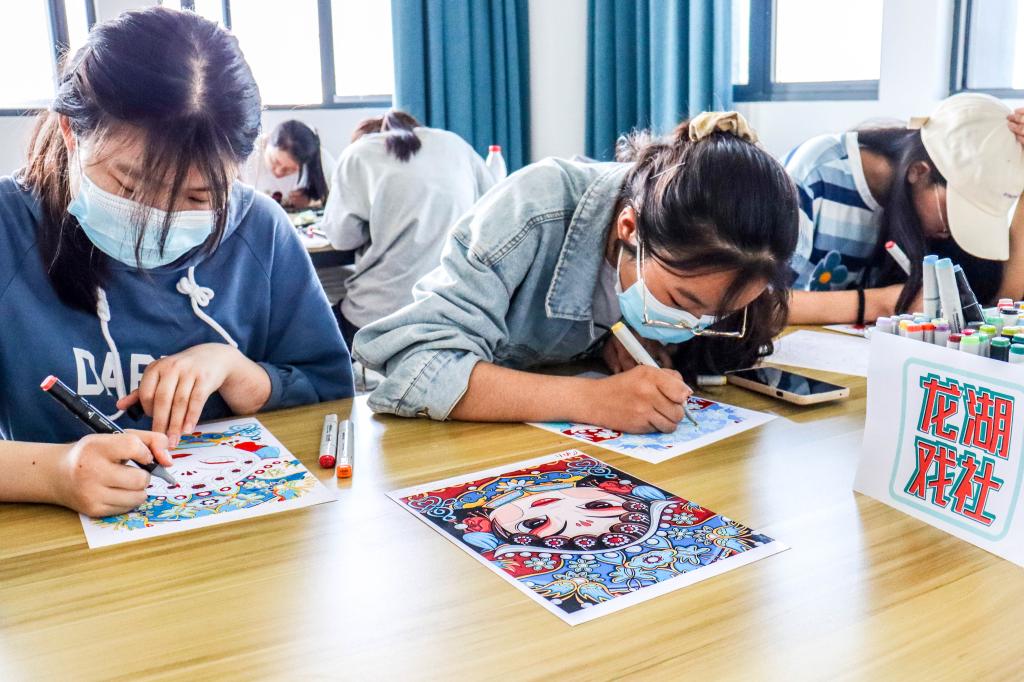 “来体验一下戏曲绘画和黏土制作吧!”教室里五颜六色的粘土材料一应俱全,学生们围坐一团,专心捏着心中的戏曲人物。而另一间教室里,则坐满了绘制脸谱和为Q版戏曲人物上色的学生。“实践能够建立兴趣,学生们在捏人物、为人物涂色的同时,也能进一步把握戏曲人物的特征。”吴振亚介绍。