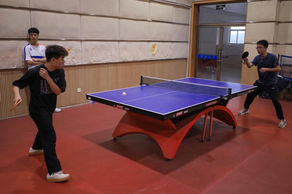 直拍、横拍、扣拍、旋转球、弧线球……选手们势均力敌,比赛进行过程中,选手们的呐喊声、助威声不绝于耳,大家都以饱满的热情全身心投入到此次比赛中。“不放弃就是获胜的原因。”经过激烈的比拼,美术学专业2021(2)班的季新聪成功进入决赛。他坦言,由于开始时大家都在进行试探性的观察,比赛进行得比较艰难,但自己与队友默契配合,最终将比分从0:2改写为3:2,成功逆袭进入决赛。