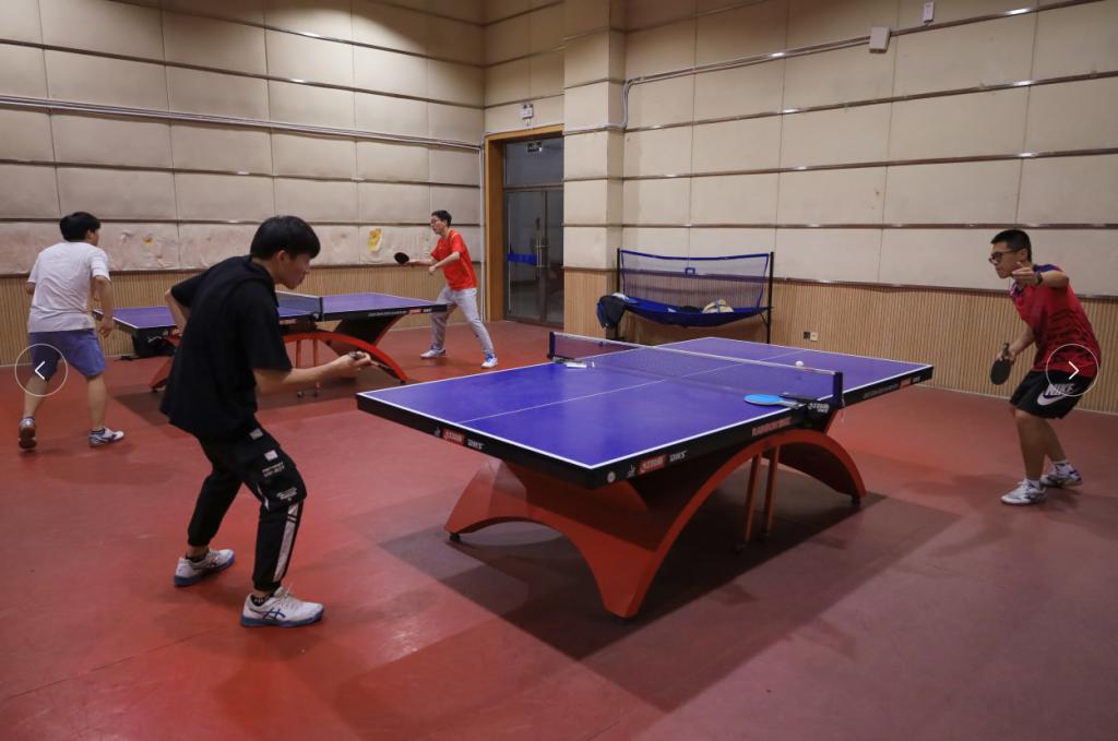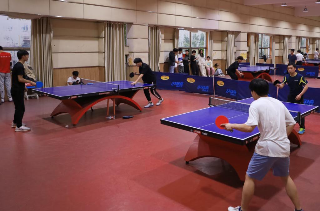 “打得太好了!”“注意防守。”……4月13日,英国上市公司365在体育馆三楼乒乓球室举办师生乒乓球联谊赛,20余名师生参与其中。