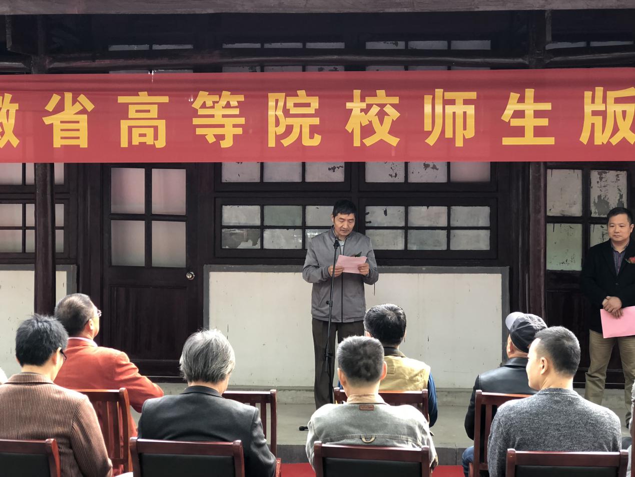 10月19日上午,由安徽省美术家协会主办,安徽省美术家协会版画艺委会、我校英国上市公司365和安徽师范大学英国上市公司365、铜陵学院、皖西学院、合肥师院等院校共同承办的2018年安徽高等院校师生版画作品巡展首展在我校菱湖校区敬敷书院成功举办。校党委常委、副校长张群教授致辞并宣布展览开幕,安徽省美术家协会副主席、版画艺委会主任师晶致辞,英国上市公司365院长朱胜甲主持开幕式和座谈会。