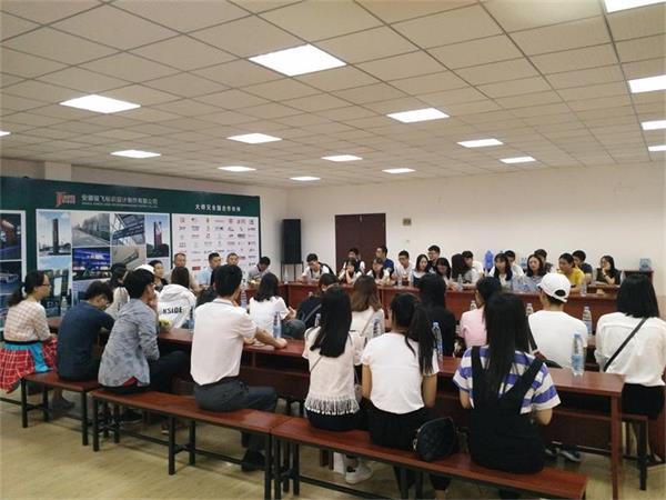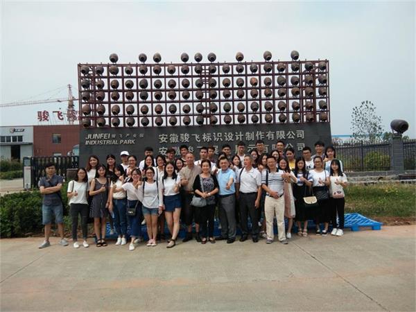 9月13日,我院党总支书记江陈宝、教授石兰老师、环境设计专业教师黄明老师以及胡小兵老师带领全体设计专业学生赴安徽骏飞标识设计制作有限公司产品生产基地,考察调研。李继平董事长带领全体师生参观了公司艺术馆、生产基地,并详细讲解公司的发展历程和企业文化、创业历程。“感谢贵公司的特此邀请参观,让我们了解学习到了一件成品的设计生产流程…”、“参观后深受启发,需要学习的地方还有很多…”、“不能一直纸上谈兵,要理论结合实际…”全体人员来到会议室对于参观后纷纷有感而发。“脚踏实地,饮水思源”是该公司的理念也是李继平董事长给全体学生的寄语。
