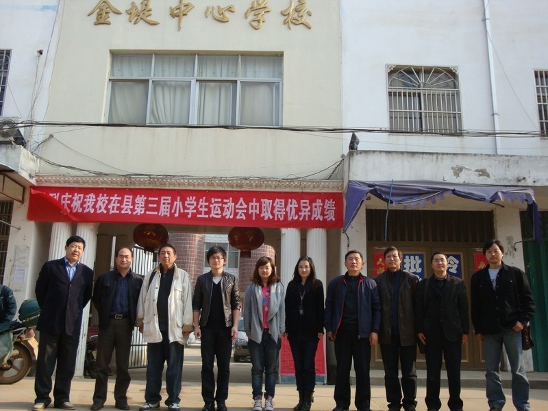 在金堤二小与支教学生毕楠楠和支教学校领导合影(右四)
