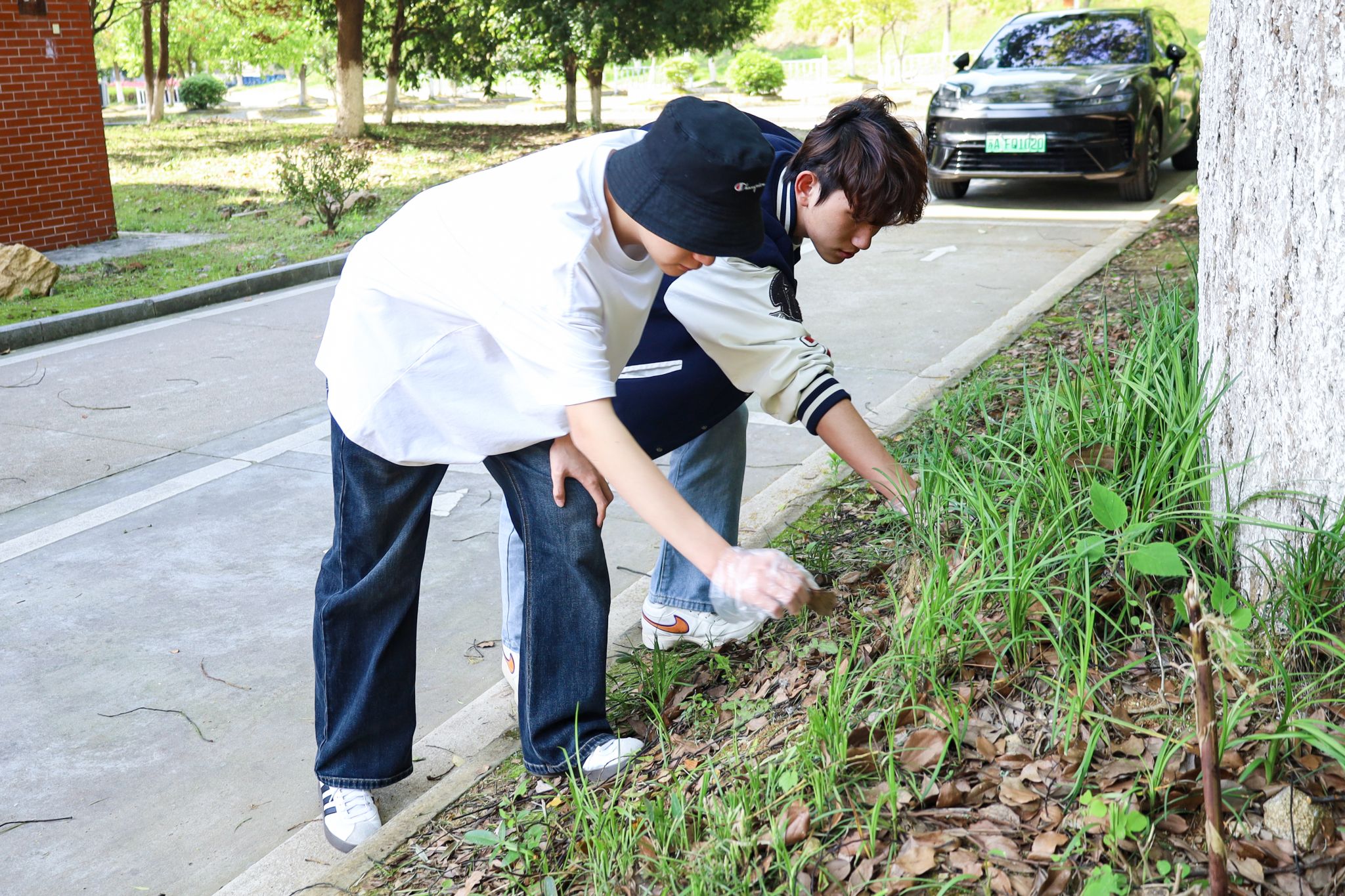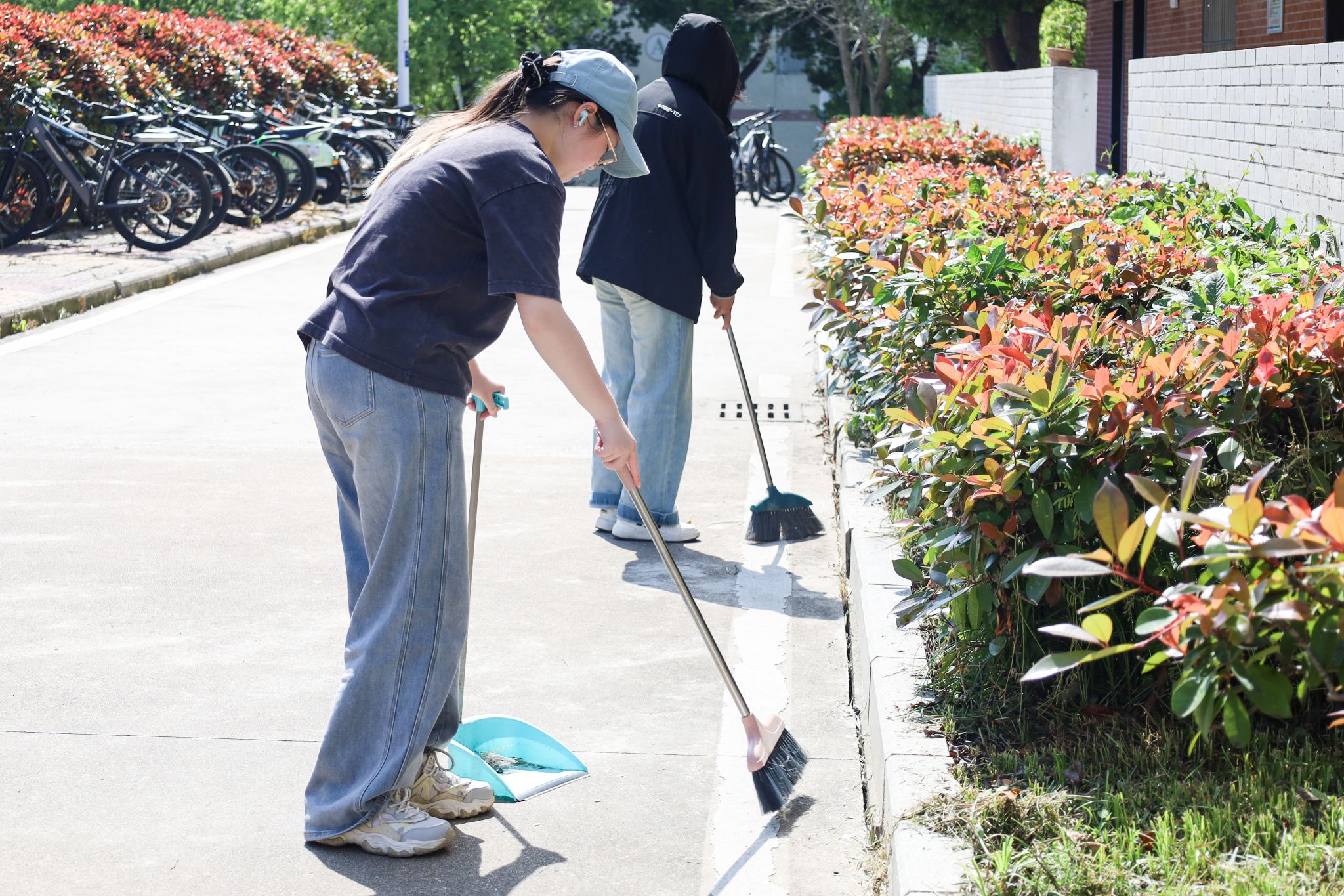 本次活动打破传统校园清扫的单一模式,不再局限于基础环境清扫。志愿者分成若干小组,俯身清理广场杂物,同步筛选收集香樟叶、梧桐叶、枯枝、竹片等材料。各类形态、色调不一的自然材料被分类收纳,既完成了校园环境清理,也为后续艺术创作备足素材,实现劳动清扫与创意取材同步推进。