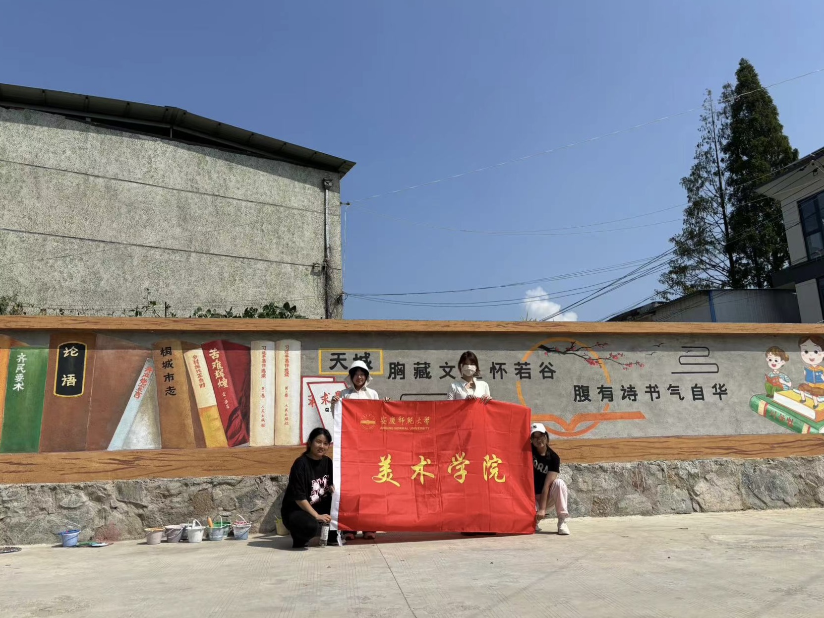 以美为媒,绘乡村振兴新画卷。学院墙绘壁画暑期社会实践团来到桐城市范岗镇杨安村,实地考察、积极走访,选择具有代表性的墙壁绘就“十里长卷”。实践团成员在田间地头“接地气”“沾泥土”,体悟乡村特色元素,将“杨安特色”融入水泥墙壁,勾勒美丽乡村崭新图景,在墙壁这块巨幅“画布”上描绘青春模样。