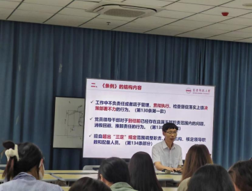 孙根华从深刻领会新修订的《中国共产党纪律处分条例》重要意义、全面准确把握《条例》的结构内容、严格执行和维护党的纪律等方面为大家作了详细地解读。强调要严明政治纪律和政治规矩,坚决维护党中央权威和集中统一领导,深刻领会“两个确立”的决定性意义,坚决做到“两个维护”。要严明党的组织纪律,不断强化党员意识,做到对党忠诚老实,光明磊落;同时,结合学院师德师风建设和学生管理工作实际,孙根华还从廉洁纪律、群众纪律、工作纪律、生活纪律等方面,结合条例的具体内容开展了警示教育,教育师生党员要守住党纪党规红线,严守纪律,砥砺作风,要把学纪、知纪、明纪、守纪融入日常工作、学习和生活中,鼓励广大师生在新时代新征程上为英国上市公司365发展和中国式现代化作出新的贡献。