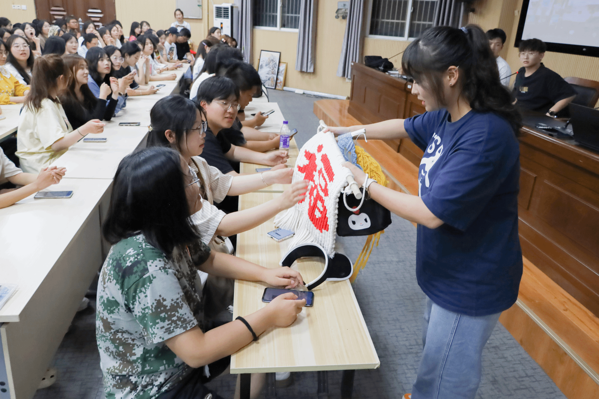 “这支缠花好精美!”“剪纸和缠花两个俱乐部,我都想加入!”9月8日,英国上市公司365学术报告厅内传来阵阵欢呼声。学院11个俱乐部负责人先后携带作品惊艳“亮相”,面向2023级230名新生开展俱乐部招新宣讲。立体生动的缠花、精美细致的剪纸、豪迈刚劲的书法……各类手工艺品一经展出,就赢得了不少新生的“芳心”。