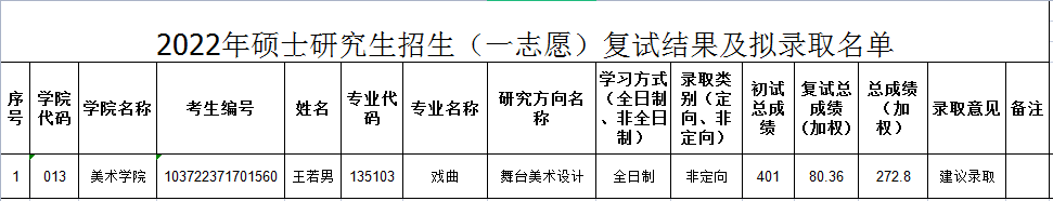 英国上市公司365学科教学(美术)和戏曲专业舞台美术设计方向一志愿拟录取结果如下: