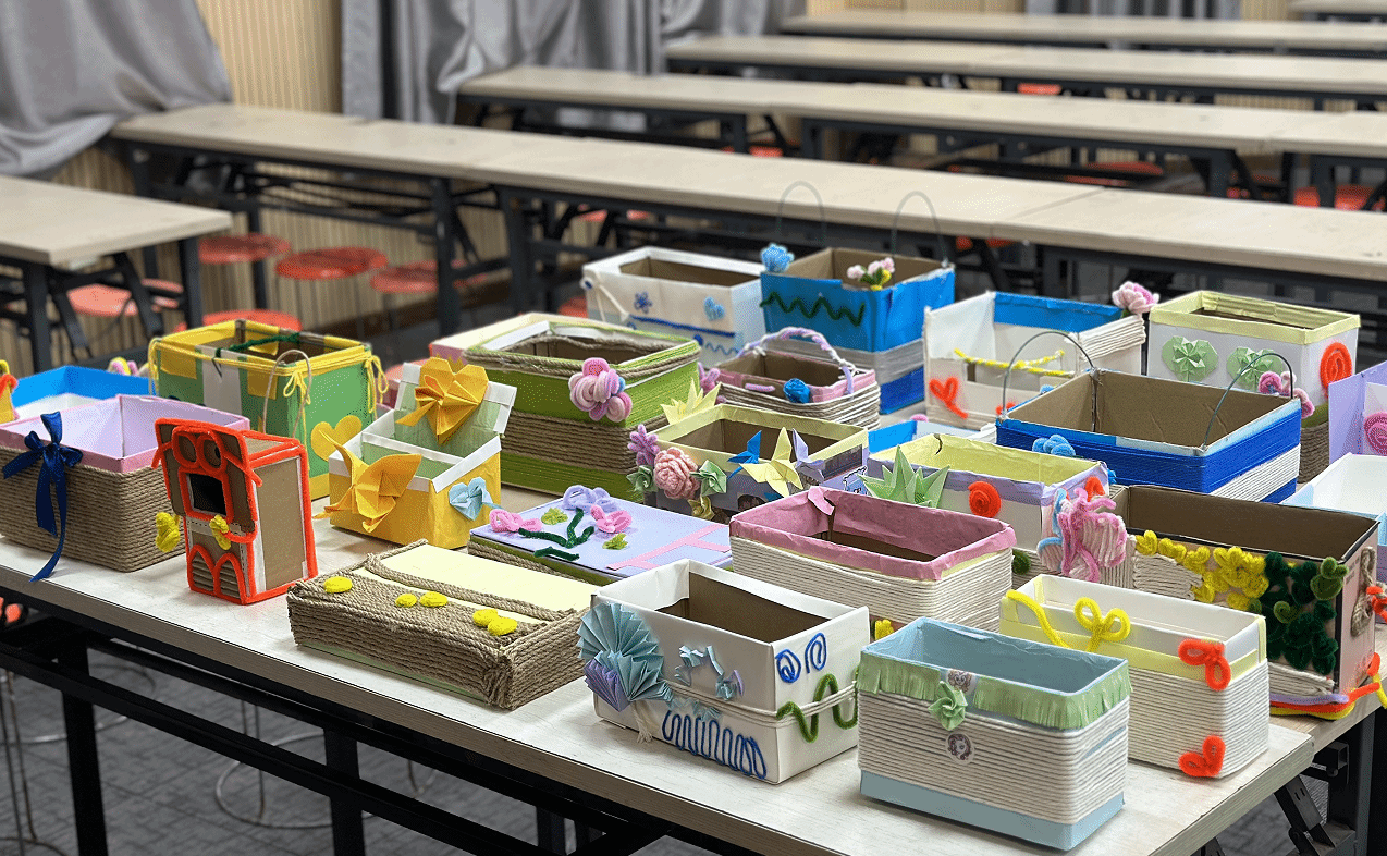 与大部分参与者不同的是,设计学专业2023(3)班的葛传毅用麻绳为收纳盒增添了一个把手。“由于教室清洁打扫时需要挪动桌面物件,一个有把手的收纳盒能够提升移动的便捷性。”葛传毅表示,能够为班级和老师们做出力所能及的事,让他成就感满满。