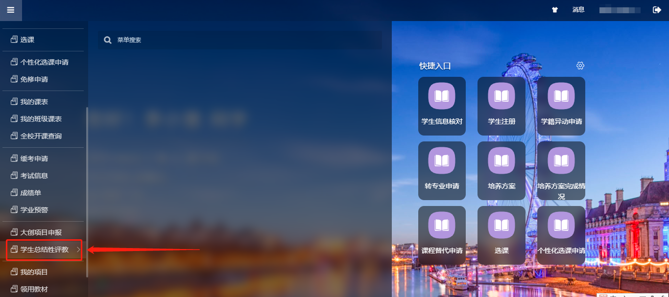 二、点击学生总结性评教菜单。